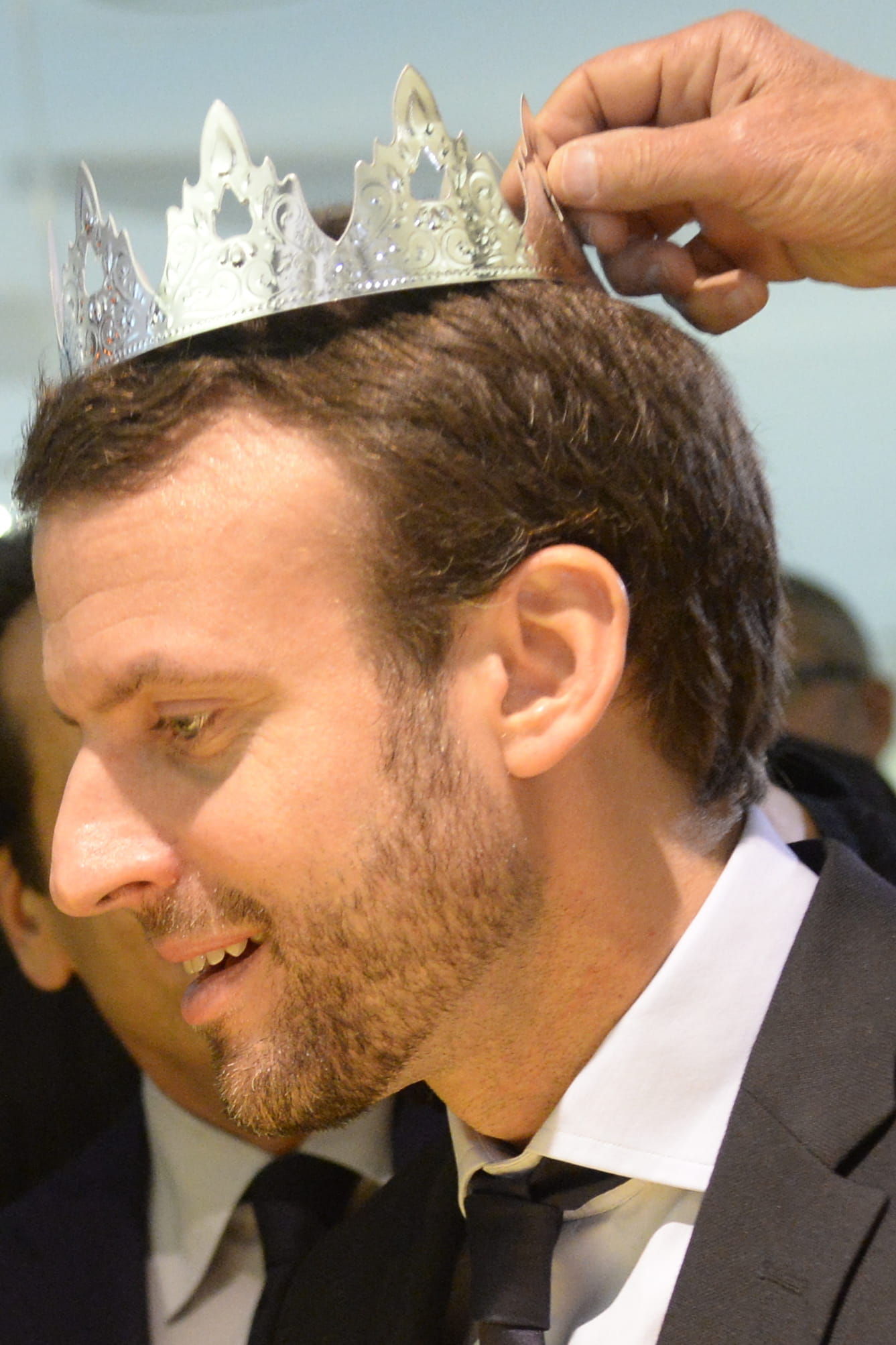 Distinction. En tant que ministre de l'Economie, Emmanuel Macron s'est rendu au centre commercial Beaugrenelle à Paris, ce mercredi 6 janvier, pour le premier jour des soldes. Les commerçants en ont profité pour lui faire goûter une galette des rois et il a visiblement trouvé la fève (du mercredi matin). C'est mieux que rien...