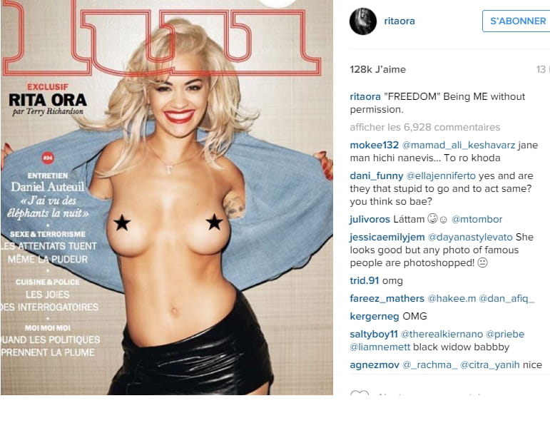 Rita Ora en couverture de Lui © Instagram @ritaora