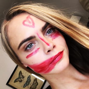Militante. Non, Cara Delevingne n'arbore pas ce nouveau look pour les besoins du tournage de Suicide Squad. Sur un cliché publié sur Instagram, le top apparaît avec des traces de rouge à lèvre sur le visage. Elle participe à la campagne #SmearForSmear, destinée à inciter les femmes à se faire examiner pour éviter un éventuel cancer du col de l'utérus