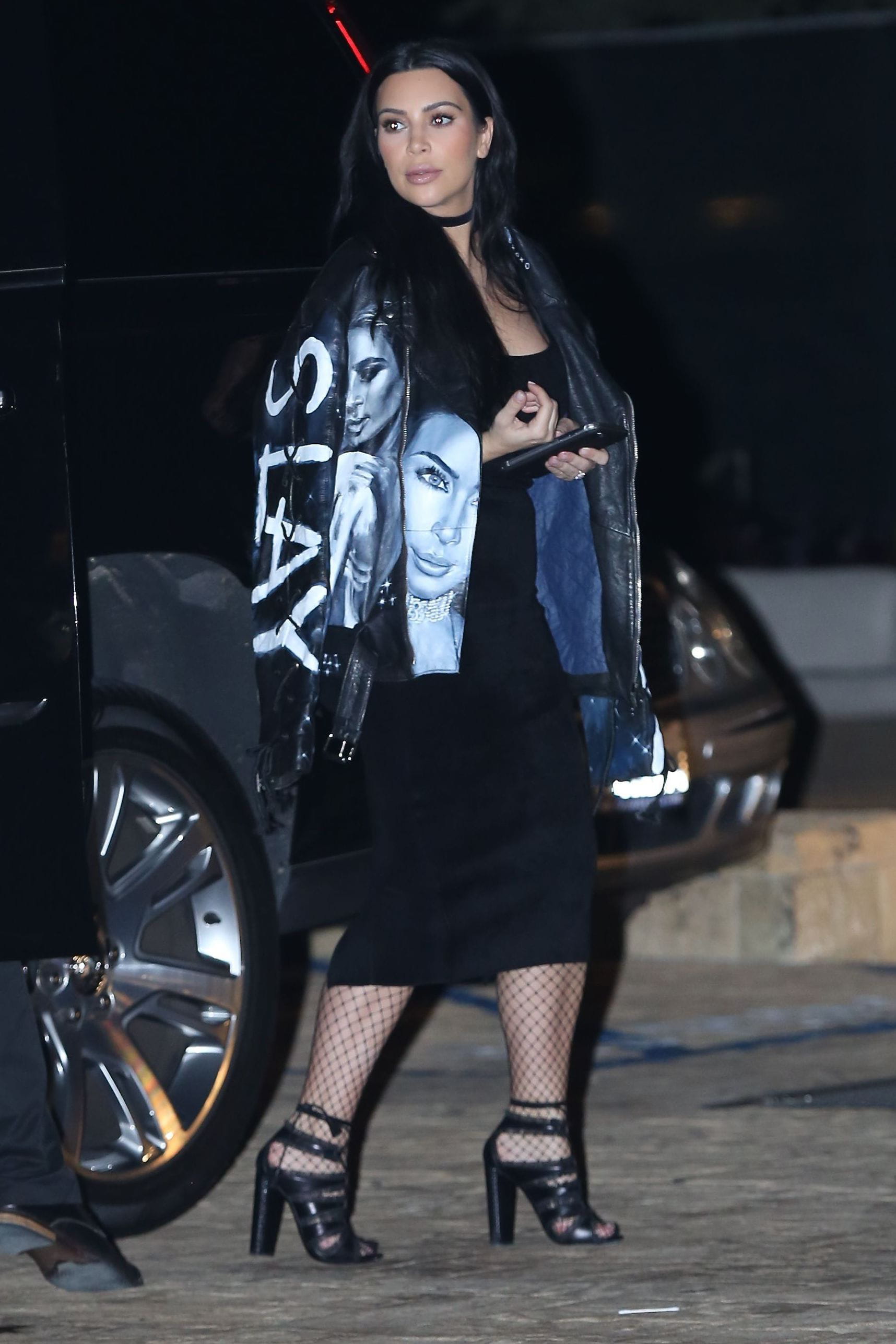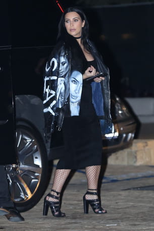 Qui se ressemble s'assemble. Kim Kardashian est mariée au plus égocentrique des rappeurs. Et elle semble suivre le même chemin. La maman de North et Saint était de sortie ce week-end. Et elle arborait fièrement un blouson de cuir à son effigie. Un brin too much.