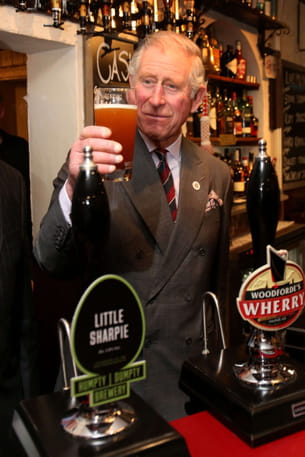 Tchin-tchin. Le Prince Charles, en visite dans le York­shire, s'est arrêté au village de Stam­ford Bridge, fortement dévasté par les inondations qui ont récemment touché l'Angleterre. Afin de remonter le moral aux habitants, il a payé son coup. De thé, of course...