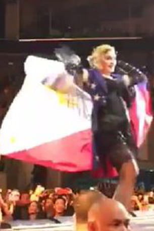 Boycott. La reine de la pop n'est décidément pas la bienvenue partuot : les autorités philippines ont annoncé qu'elles envisageaient d'interdire les concerts de Madonna, pour avoir "manqué de respect" au drapeau national. En cause ? Des vidéos de la Ciccone en plein concert, sur lesquelles elle danse avec ledit drapeau sur les épaules, chose passible d'un an d'emprisonnement sur l'archipel depuis 1998.