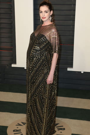 Radieuse. Anne Hathaway, enceinte de plusieurs mois, a fait sensation dimanche lors de la cérémonie des Oscars. La comédienne de 33 ans était superbe dans sa robe ornée de pierres, qui laissait voir ses rondeurs de future maman.