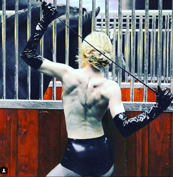 Sexy. Madonna a posté une photo d'elle sur Instagram avant son concert en Nouvelle-Zélande. On découvre l'artiste dos nu face à un cheval, tenant en mains une cravache et vêtue d'une simple culotte en cuir noir. Elle commente : "Je prépare mes chevaux pour le show… Hue Nouvelle-Zéland." Ça promet !