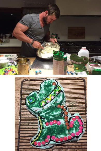 Papa-tissier. Chris Hemsworth a tout bon dans tous les domaines. Excellent acteur, la star est aussi un père aux petits soins pour ses trois enfants. Pour le 4e anniversaire de son aînée, India, le comédien a littéralement mis la main à la pâte en lui préparant un gâteau en forme de dinosaure. On craque.