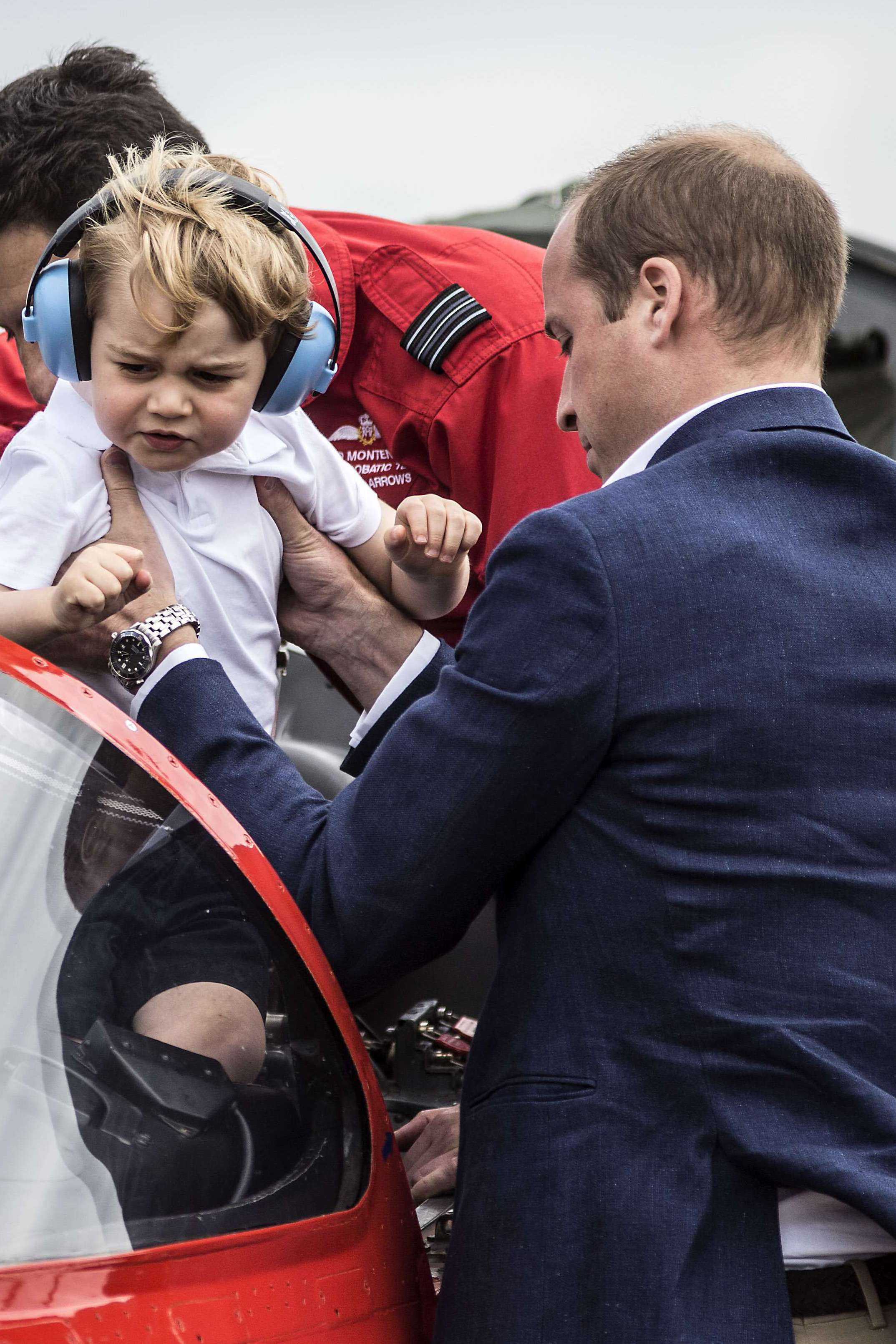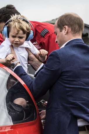 Aux commandes. Kate Middleton et le prince William ont emmené l'adorable petit prince George faire un tour d'hélicoptère lors d'une visite à la Royal Air Force.  "Comme je m'y attendais, le prince George a été un peu impressionné par le bruit et le fait de se retrouver à l'intérieur d'un hélicoptère", a déclaré le lieutenant Jim Hobkirk au magazine People. Le fils du couple princier aurait également été "très intéressé par le rotor anticouple (une hélice située à l'arrière de l'appareil, ndlr). J'imagine que le Duc a dû lui en parler déjà car il n'arrêtait pas de dire : 'rotor anticouple' !", a-t-il ajouté. Trop mignon !