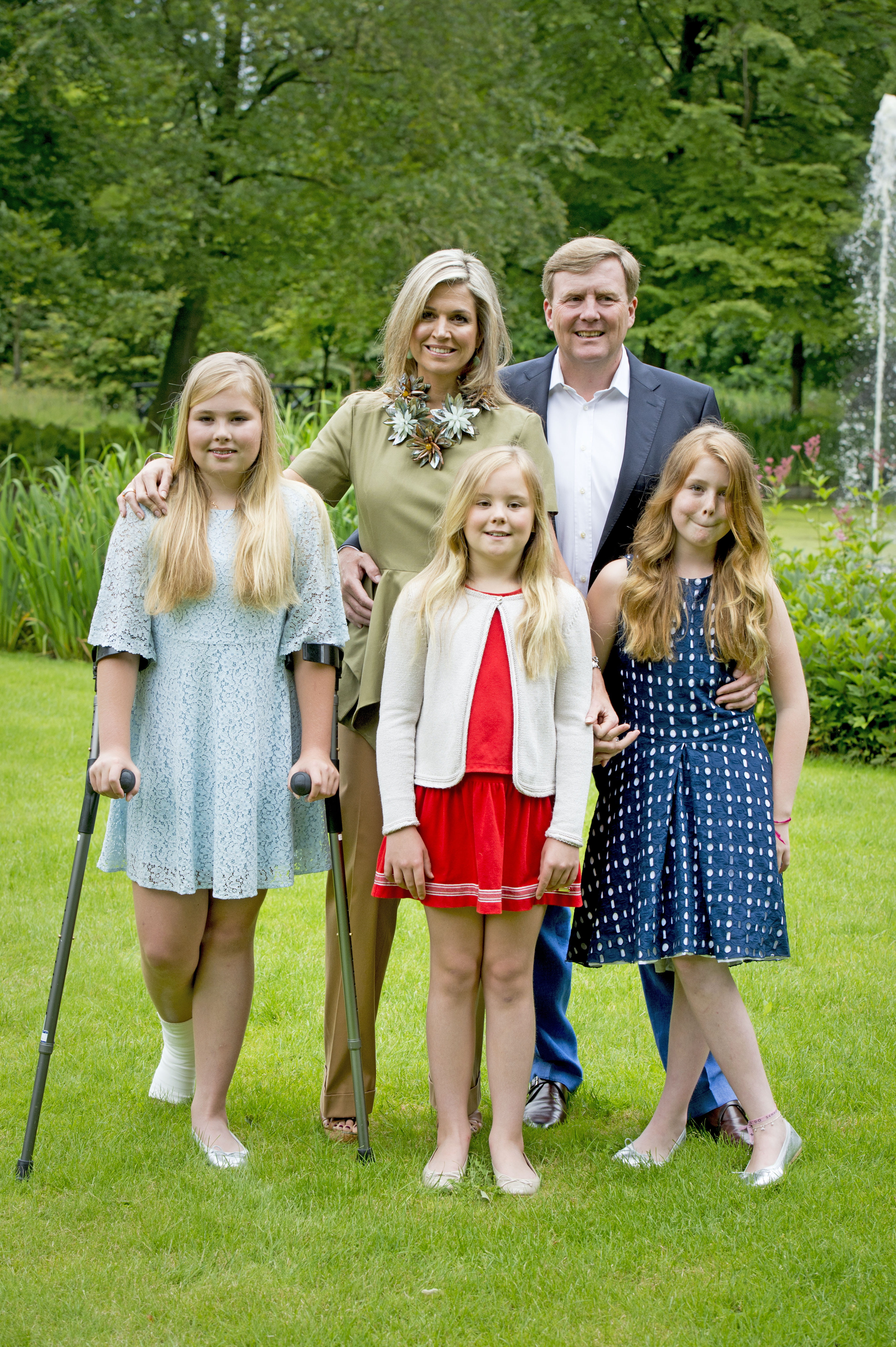 Petite forme. Malgré leurs soucis de santé, les membres de la famille royale hollandaise ont pris la pose pour la traditionnelle séance photo d'été. La reine Maxima est apparue avec un grand sourire, alors qu'elle a été victime d'une commotion cérébrale quelques jours plus tôt. Sa fille Amalia, 12, a pour sa part une entorse à la cheville ; c'est donc en béquilles qu'elle est apparue devant les photographes. Souhaitons-leur un bon rétablissement !