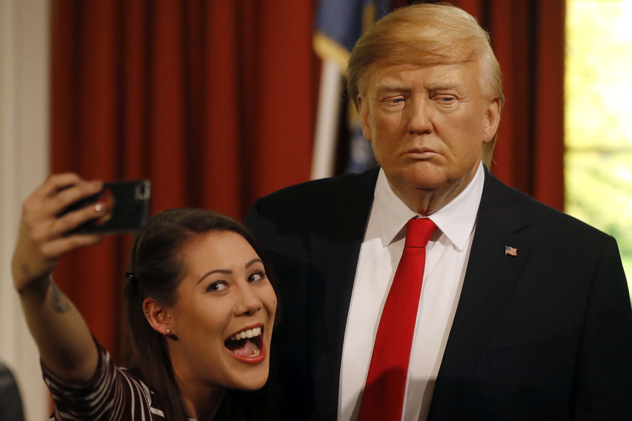 Ci-dessus : Un Donald Trump en cire et surtout très enjoué au Madame Tussauds à Londres.