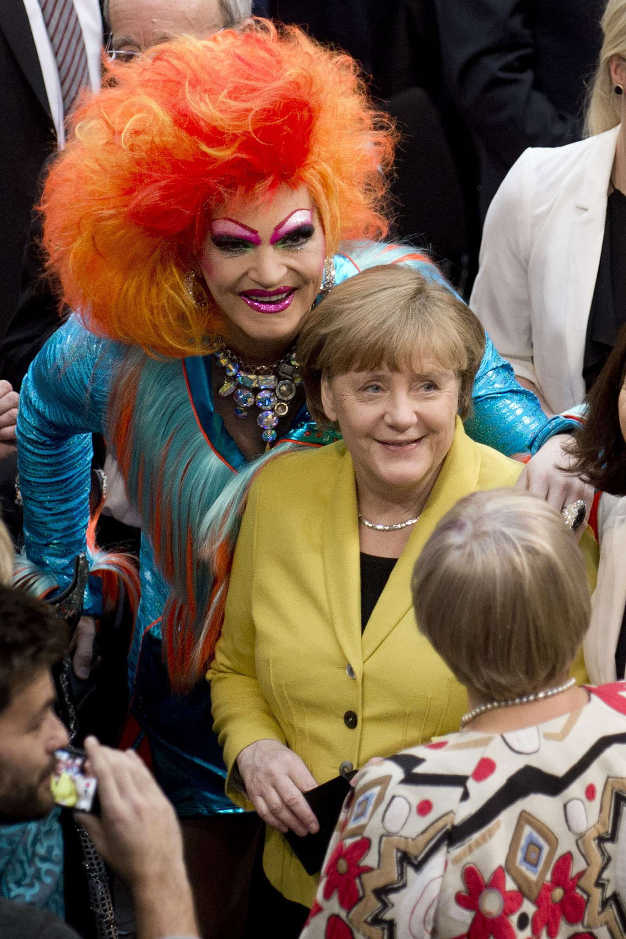 Election. Angela Merkel était sur le terrain à l'occasion de l'élection du nouveau président allemand, Frank-Walter Steinmeier. La chancelière a posé avec la drag queen Olivia Jones, grand électeur à l'assemblée fédérales. Deux rousses pour le prix d'une !