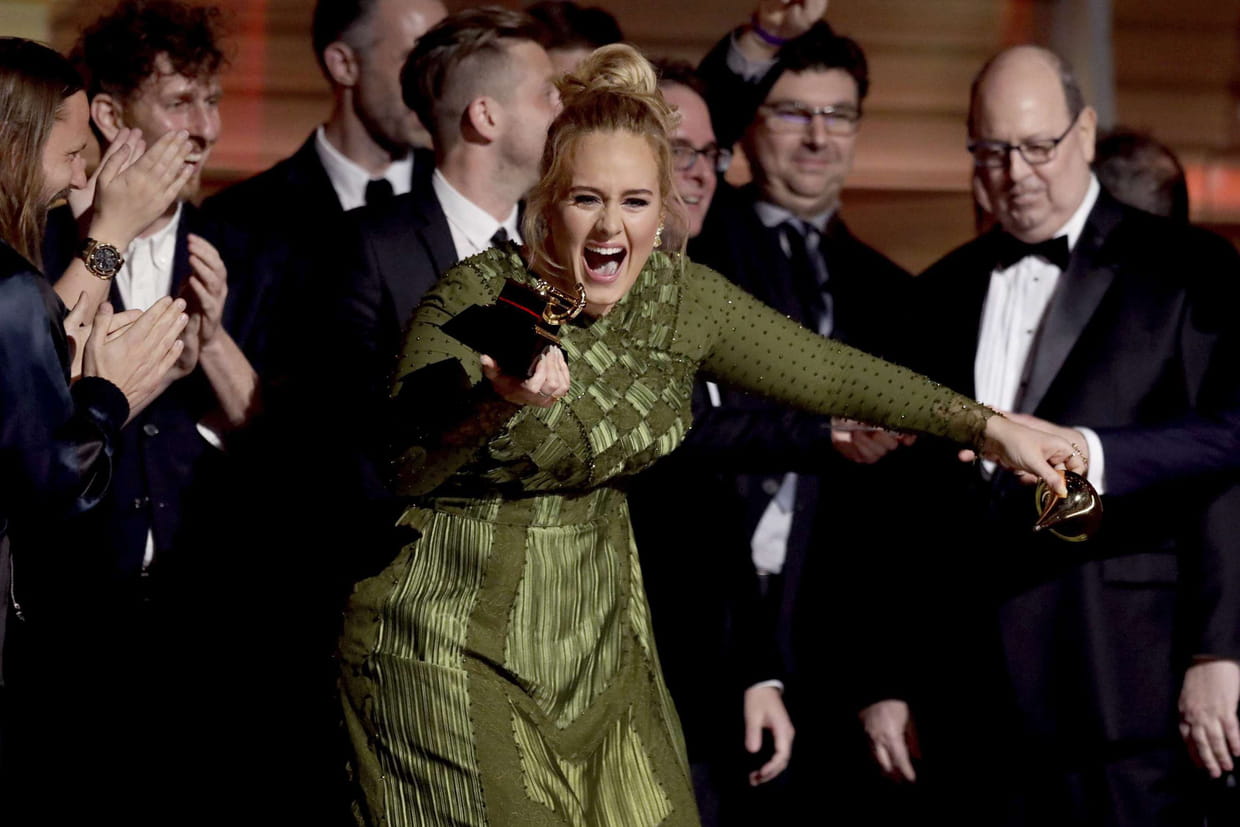 Ci-dessus, Adèle éblouissante aux Grammy Awards. On vous a dit qu'elle avait même partagé son prix avec Beyoncé ?