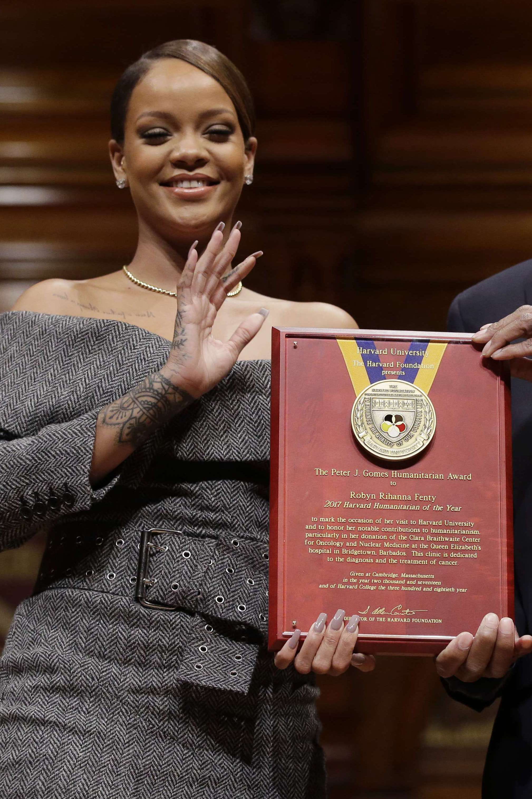 Distinction. Rihanna s'est rendue à Harvard pour recevoir le prix de la Personnalité humanitaire de l'année, remis par la prestigieuse université. "Hé bien, j'ai réussi à entrer à Harvard", a-t-elle ironisé. La chanteuse de 29 ans a délivré un message fort : "On n'a pas besoin d'être riche pour aider quelqu'un. […] Tout ce que vous avez à faire, c'est d'aider une personne sans rien attendre en retour. Pour moi, c'est cela faire de l'humanitaire." L'artiste succède à Ban Ki-moon, Malala Yousafzai ou Lionel Richie. Félicitations !