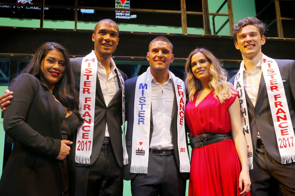 Ayem Nour faisait partie du jury Mister France, présidé par Clara Morgane. Ici, toutes deux posent avec Mister France 2017 et ses dauphins.