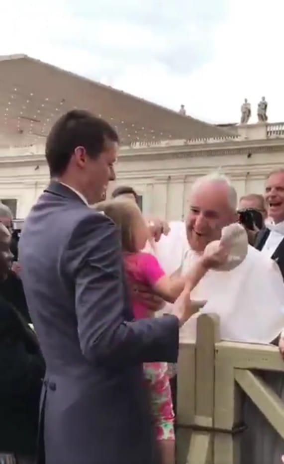 Fourberie. Lors d'une messe au Vatican, une petite fille a profité d'un bisou au pape François pour lui chourer sa calotte. Le souverain pontife a pris ce geste audacieux avec beaucoup d'humour.