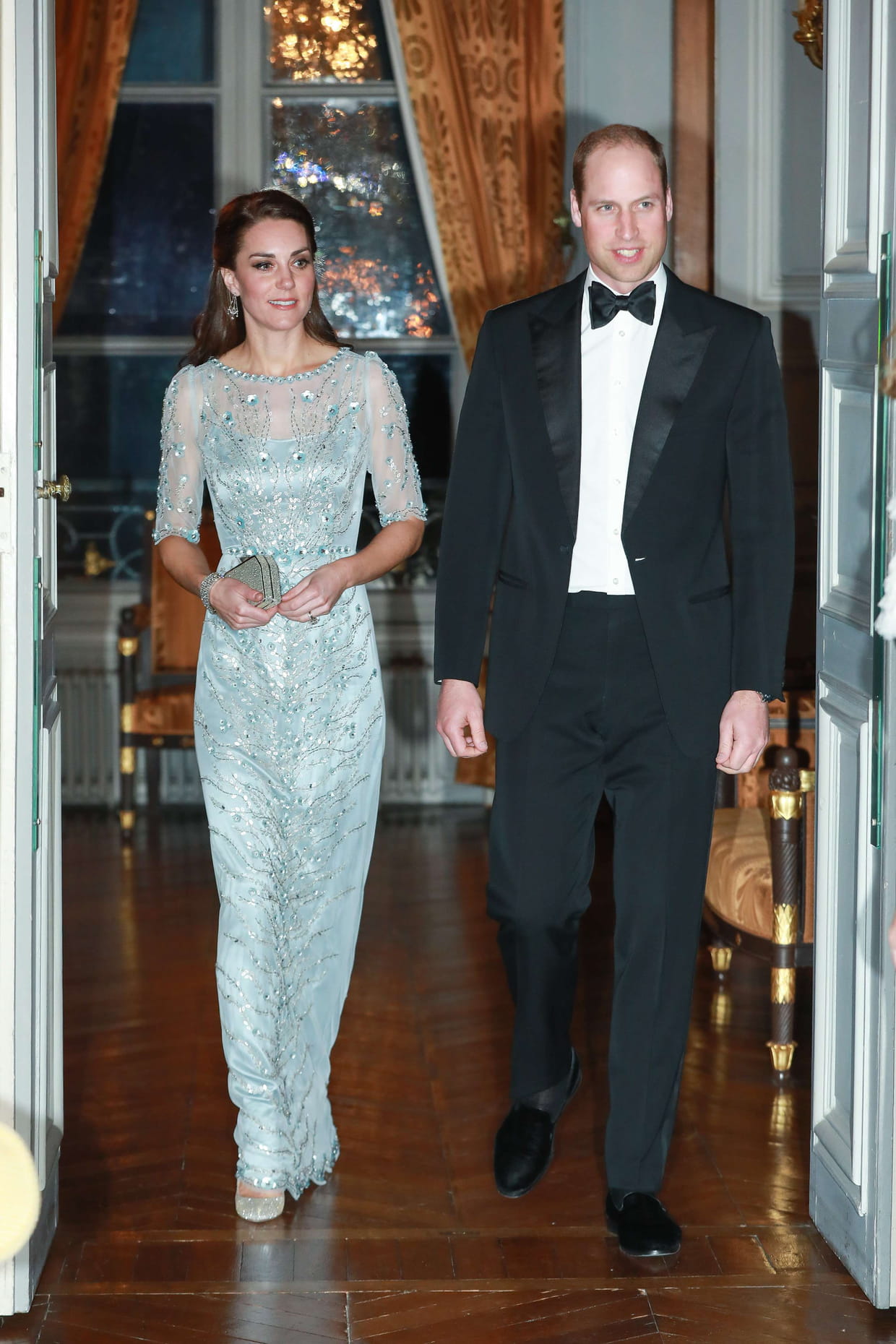 Pour dîner chez l'ambasadeur, le couple princier a sorti le grand jeu. La duchesse a pour sa part opté pour une ravissante robe Jenny Packham.