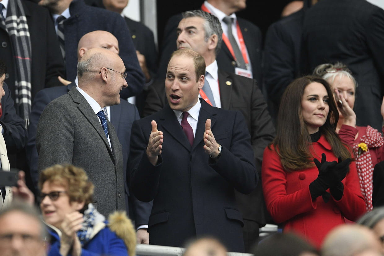 Le prince William, visiblement enchanté d'échanger avec Bernard Laporte, le président de la fédération de rugby.