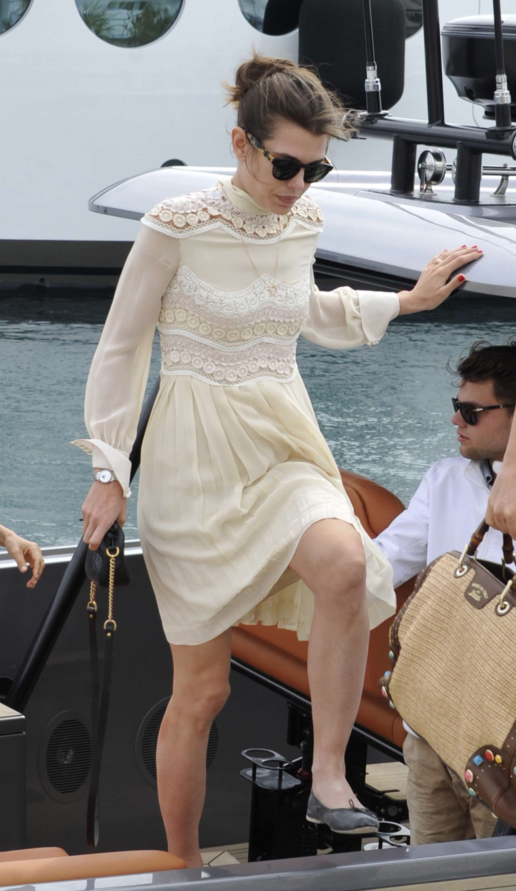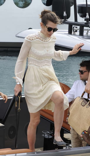 A l'abordage ! Bien que cavalière, ce n'est pas à cheval que Charlotte Casiraghi a décidé de se déplacer, mais en bateau. Pour éviter les bouchons de la Croisette, la jeune femme a préféré passer par la mer. C'est donc sur un très chic bateau de plaisance qu'elle s'est rendue au pieds des marches du Festival de Cannes.