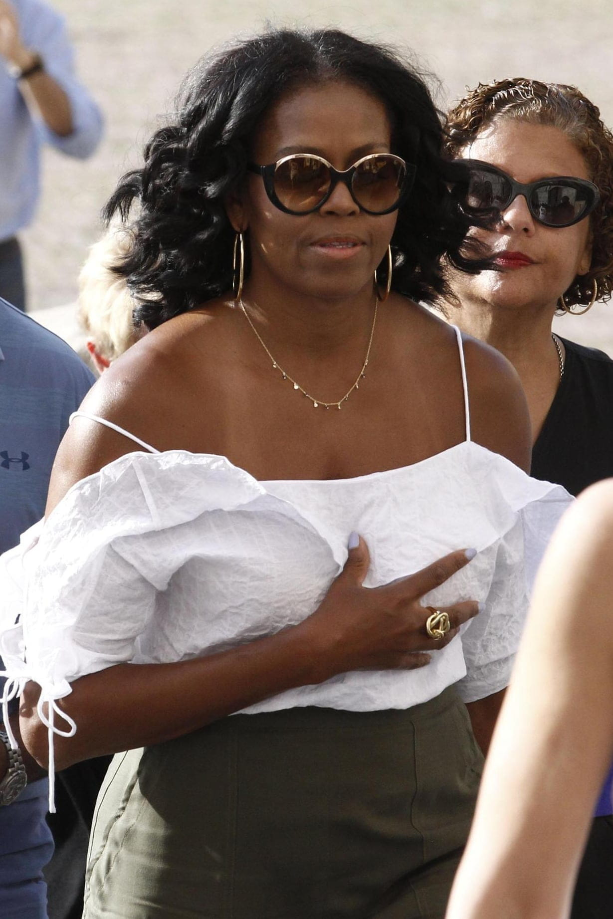 Détendue. Michelle Obama, 53 ans, savoure sa liberté retrouvée, loin du protocole de la Maison-Blanche. L'ex-First Lady, de passage à Milan avec Barack Obama, a été vue dans les rues de la ville vêtue d'une blouse blanche qui laissait ses épaules nues et laissait penser qu'elle ne portait pas de soutien-gorge. Libérée, délivrée !