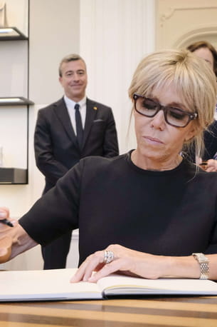Vieilles habitudes. Brigitte Macron a fait ses premiers pas à l'international lors du sommet de l'OTAN à Bruxelles. Après une visite au musée Magritte, l'enseignante de 64 ans s'est rendue à la maroquinerie Delvaux accompagnée d'autres premières dames. En aurait-elle profité pour corriger quelques copies ?