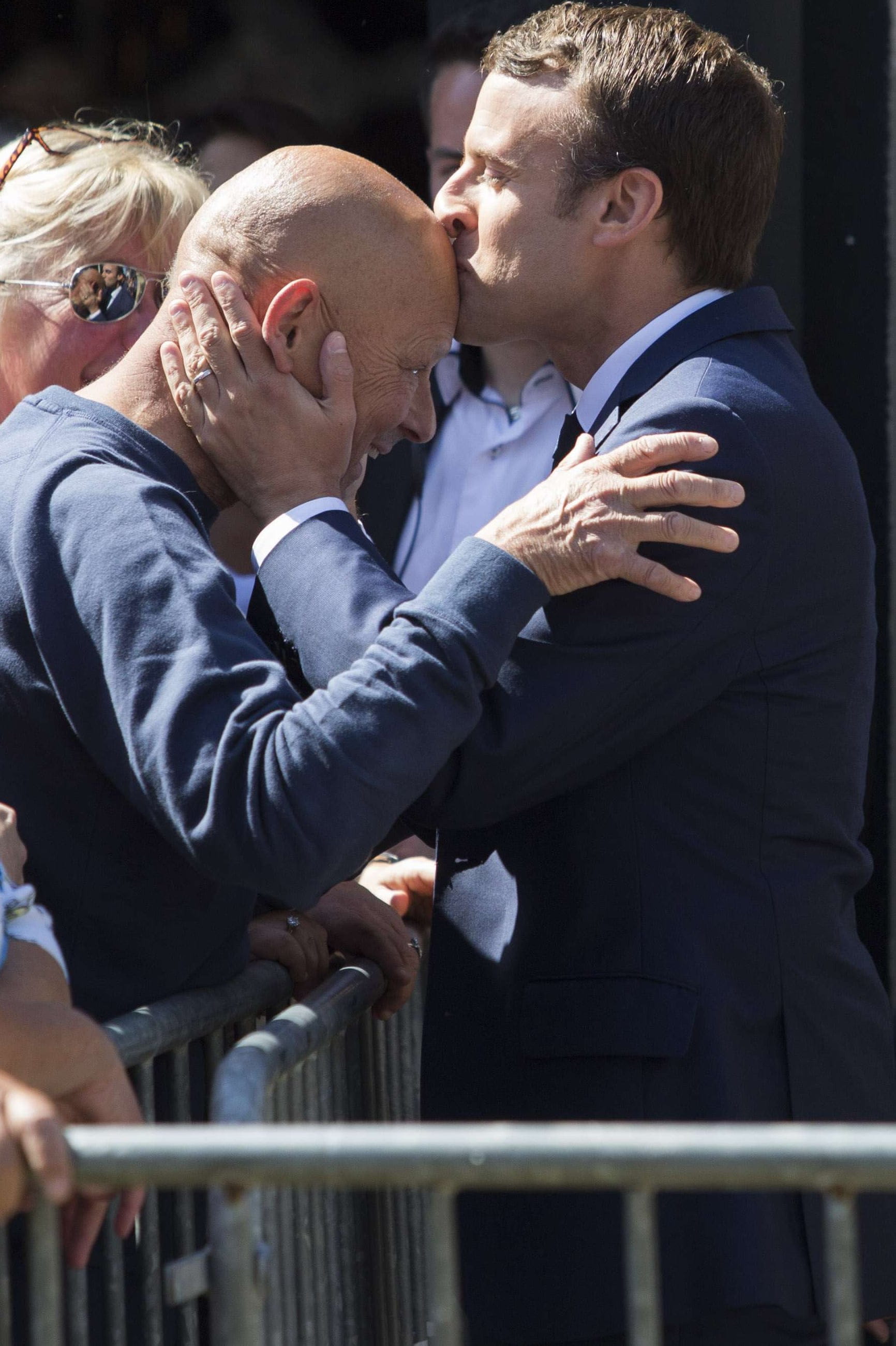 Big bisou. En arrivant à son bureau de vote du Touquet, Emmanuel Macron a embrassé le crâne chauve d'un sympathisant qu'il a salué dans la foule, comme le faisait Laurent Blanc sur celui de Fabien Barthez pendant la Coupe du Monde 1998. Il semblerait que ce geste ait porté bonheur à La République En Marche lors des élections législatives…