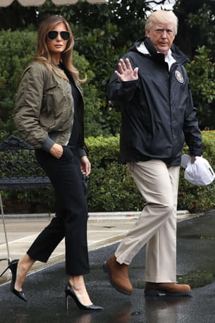 Chapeau melon et bottes de cuir. En visite au Texas, dévasté par l'ouragan Harvey, Melania Trump n'avait pas la tenue appropriée. Son look ? Talons hauts, bomber et lunettes de soleil. "Melania ressemble à Barbie Alerte Inondation" se moque un internaute. La First Lady doit encore apprendre l'empathie.