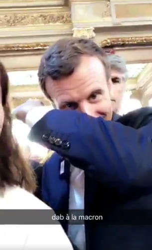 Comme "dab"itude. Emmanuel Macron a fêté l'attribution des Jeux Olympiques à Paris d'une drôle de façon. Dans un élan de joie, le Président a été pris en flag' de... "dab", filmé par la cycliste Basma El Ghouate. Ce n'est pas la première fois que le Chef de l'État exprime son bonheur de cette façon. Paris est magique !
