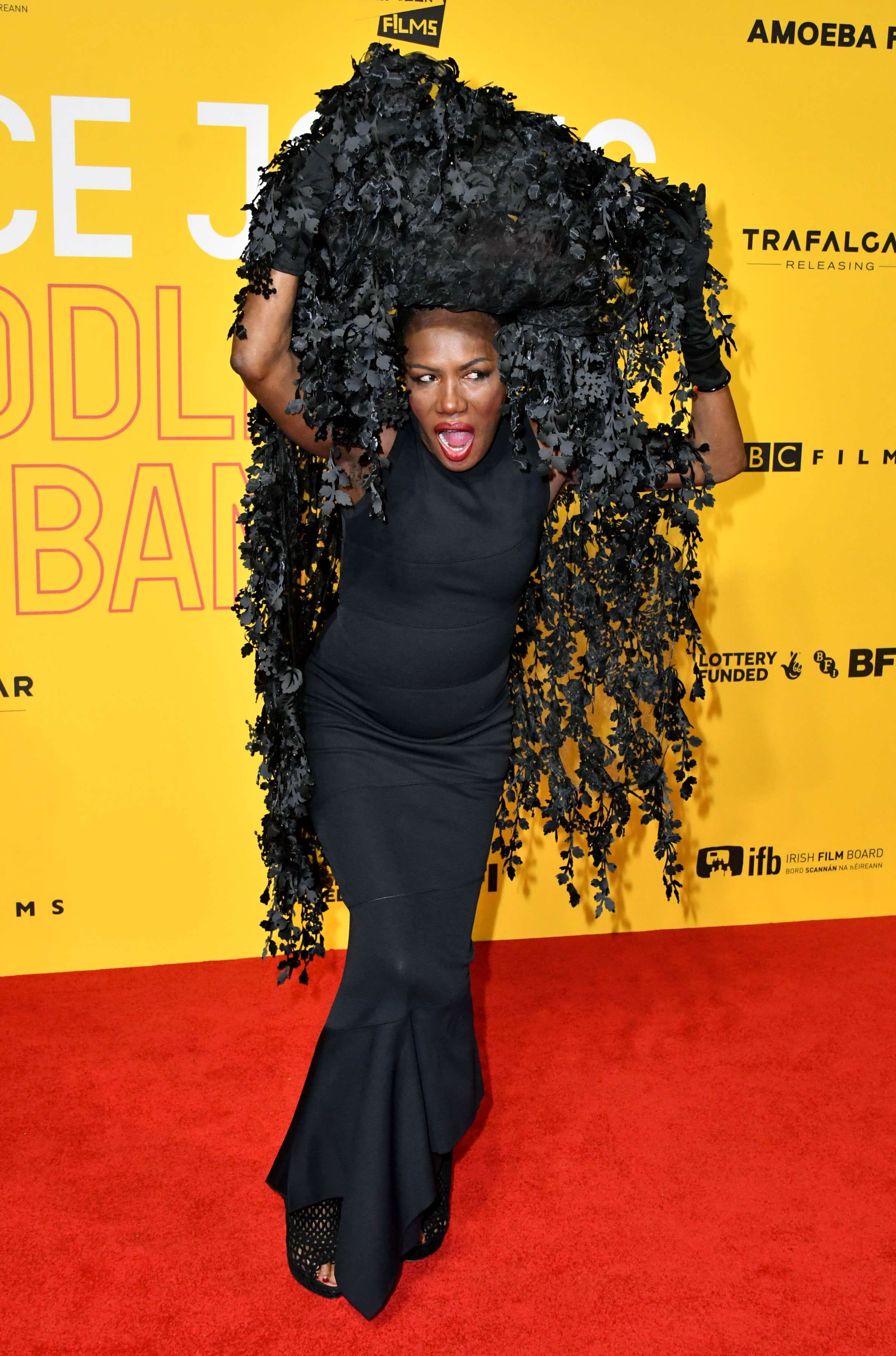 Grace Jones et sa tenue tirée par les che © Nils Jorgensen/Shutters/SIPA