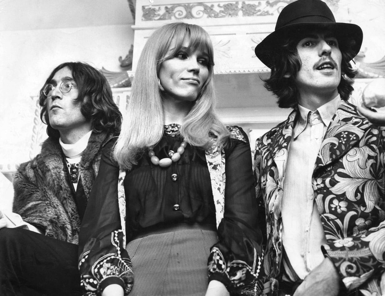Entourée de John Lennon et George Harrison (1968)