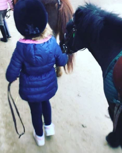 A dada. Carla Bruni-Sarkozy a partagé la première leçon d'équitation de Giulia. Bombe sur la tête, la môme de 6 ans promène son poney comme une grande. Mignonne.
