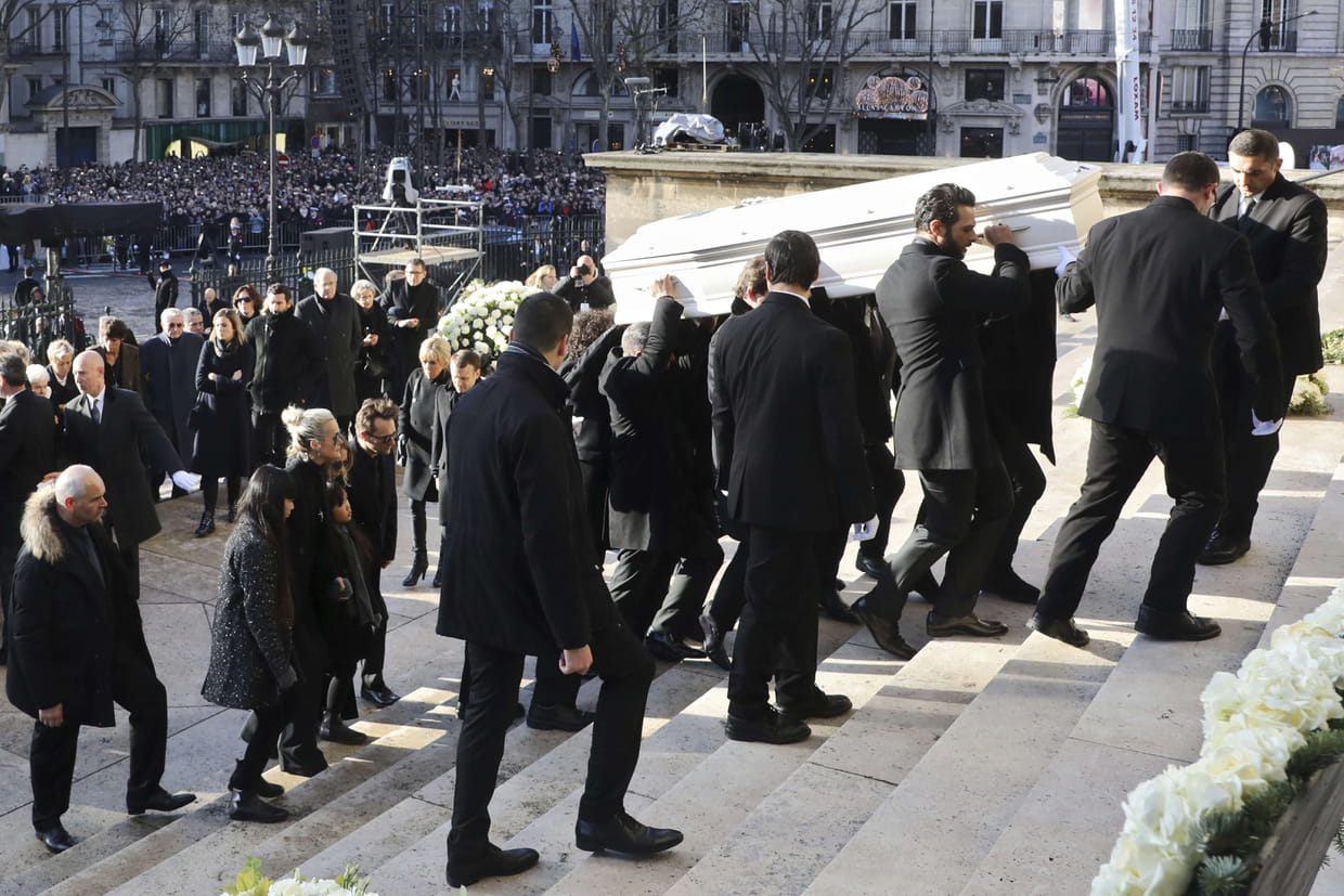 Le cercueil blanc de Johnny Hallyday arrive à l'église de la Madeleine, le 9 décembre 2017.