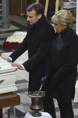 Hommage. Au moment de bénir le cercueil de Johnny Hallyday, Emmanuel Macron s'est retenu de le bénir. Après avoir machinalement pris le goupillon, le président de la République l'a finalement reposé dans le seau d'eau bénite, avant de s'appuyer sur le cercueil. Un geste laïc et fort.