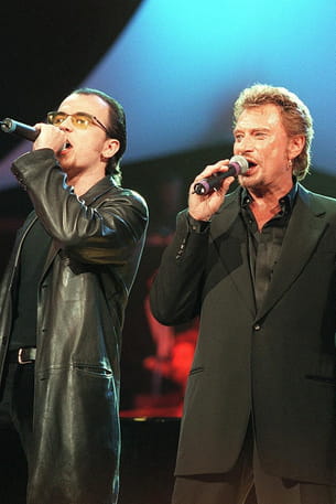 Pascal Obispo et Johnny Hallyday, en 1998 © NIVIERE/SIPA
