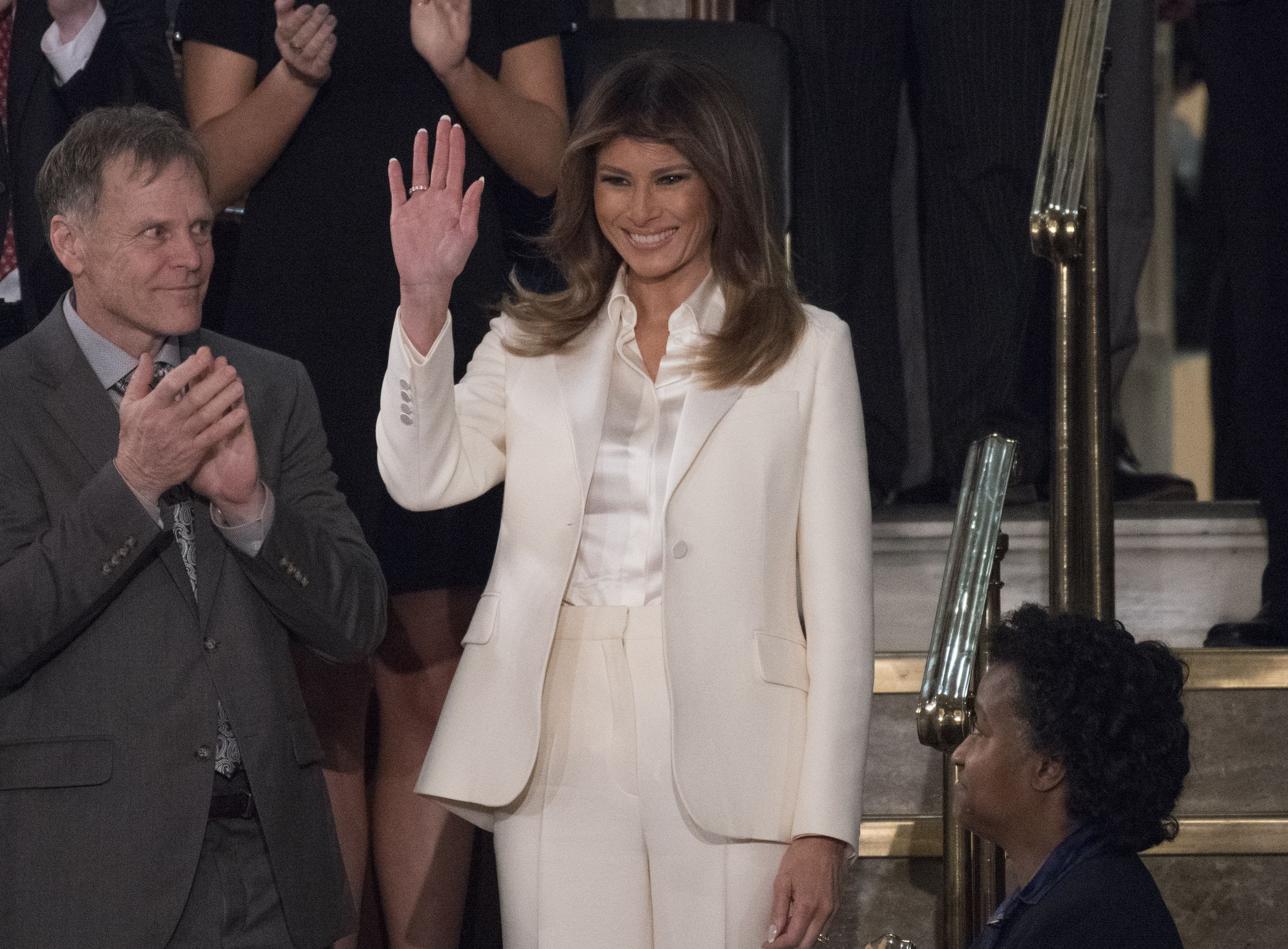 Retour en fanfare. Alors que Melania Trump ne s'affichait plus au côté de son époux Donald Trump, elle a été accueillie par une standing ovation dans l'hémicycle du Capitole. Vêtue d'un tailleur-pantalon blanc de la maison Dior, la First Lady irradiait parmi les élus vêtus de noir. Une revanche bien méritée.
