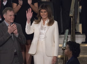 Retour en fanfare. Alors que Melania Trump ne s'affichait plus au côté de son époux Donald Trump, elle a été accueillie par une standing ovation dans l'hémicycle du Capitole. Vêtue d'un tailleur-pantalon blanc de la maison Dior, la First Lady irradiait parmi les élus vêtus de noir. Une revanche bien méritée.