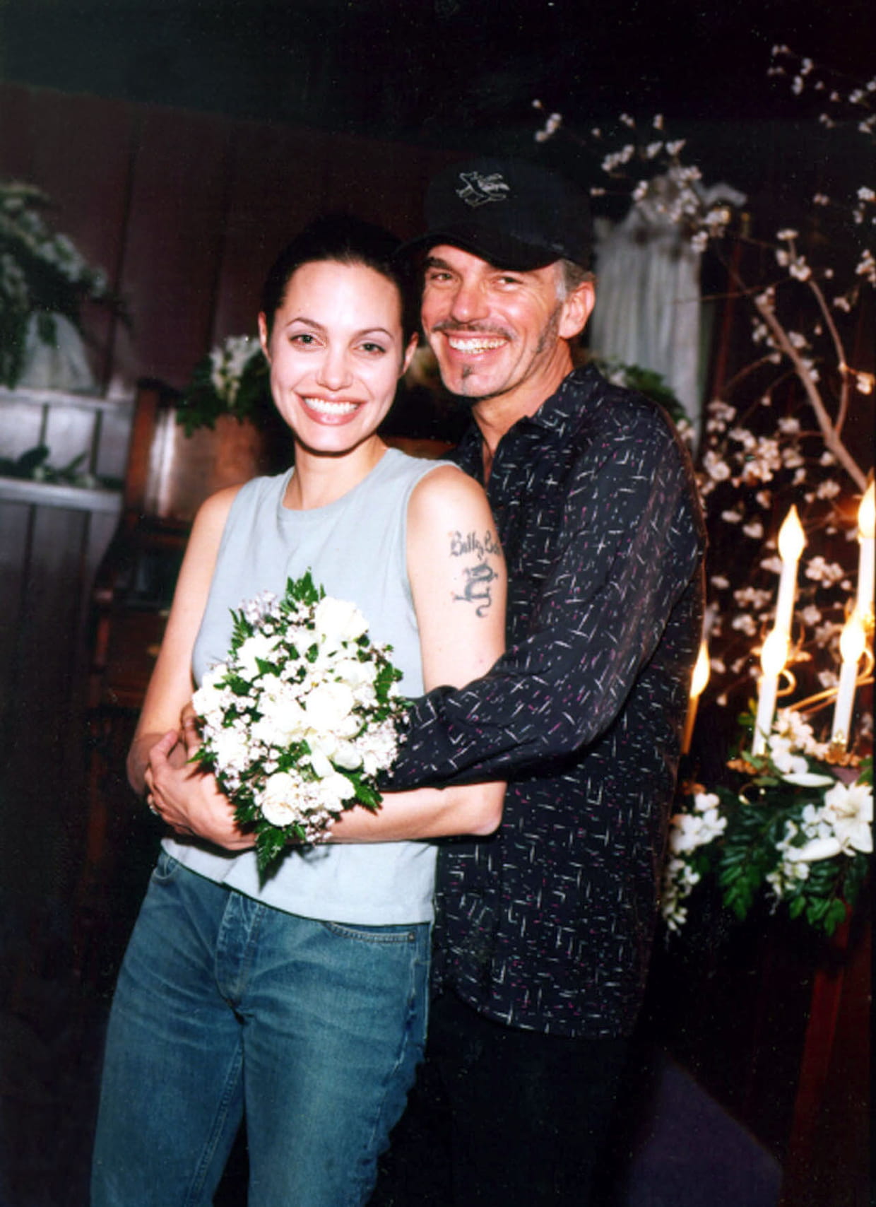Angelina Jolie et Billy Bob Thornton n'ont pas perdu de temps, puisque seulement 2 mois après leur rencontre, les acteurs se marient à Las Vegas en 2000. Une cérémonie décontractée, où la mariée a opté pour un jean et débardeur gris et le futur époux une casquette noire.