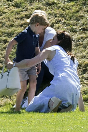 Dans les jupes de sa mère. Prince George s'est révélé être le souffre-douleur de sa cousine, Savannah Phillips, à l'occasion du trophée royal de polo. Le fils du duc et de la duchesse de Cambridge a été poussé du haut d'une colline par la fillette de 7 ans. S'il y a eu plus de peur que de mal, le petit prince est allé sécher ses larmes dans les bras de sa maman. Chou.