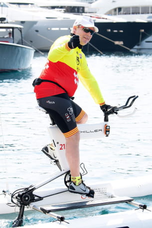Ça pédale. Albert de Monaco a participé à la 2e édition du Riviera Water Bike Challenge, un événement dont les fonds sont reversés à la fondation Charlene de Monaco. Le principe ? Faire une boucle de 20 kms en vélo flottant. Si la princesse ne s'était pas prêtée au jeu l'an dernier, elle a tenté l'expérience et a même remporté la compétition avec son équipe. Comme un poisson dans l'eau.