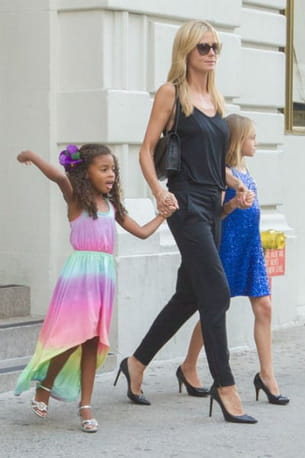 Mise au point. "Tant qu'elles sont de bons enfants et ont de bonnes notes, elles peuvent porter ce qu'elles veulent", explique Heidi Klum au magazine ELLE à l'attention de ses détracteurs, au sujet de ses filles, Leni et Lou (14 et 8 ans). Et d'ajouter : "Les gens s'énervent, surtout en Allemagne, s'ils voient mes filles porter des talons hauts. Grosse affaire !"
