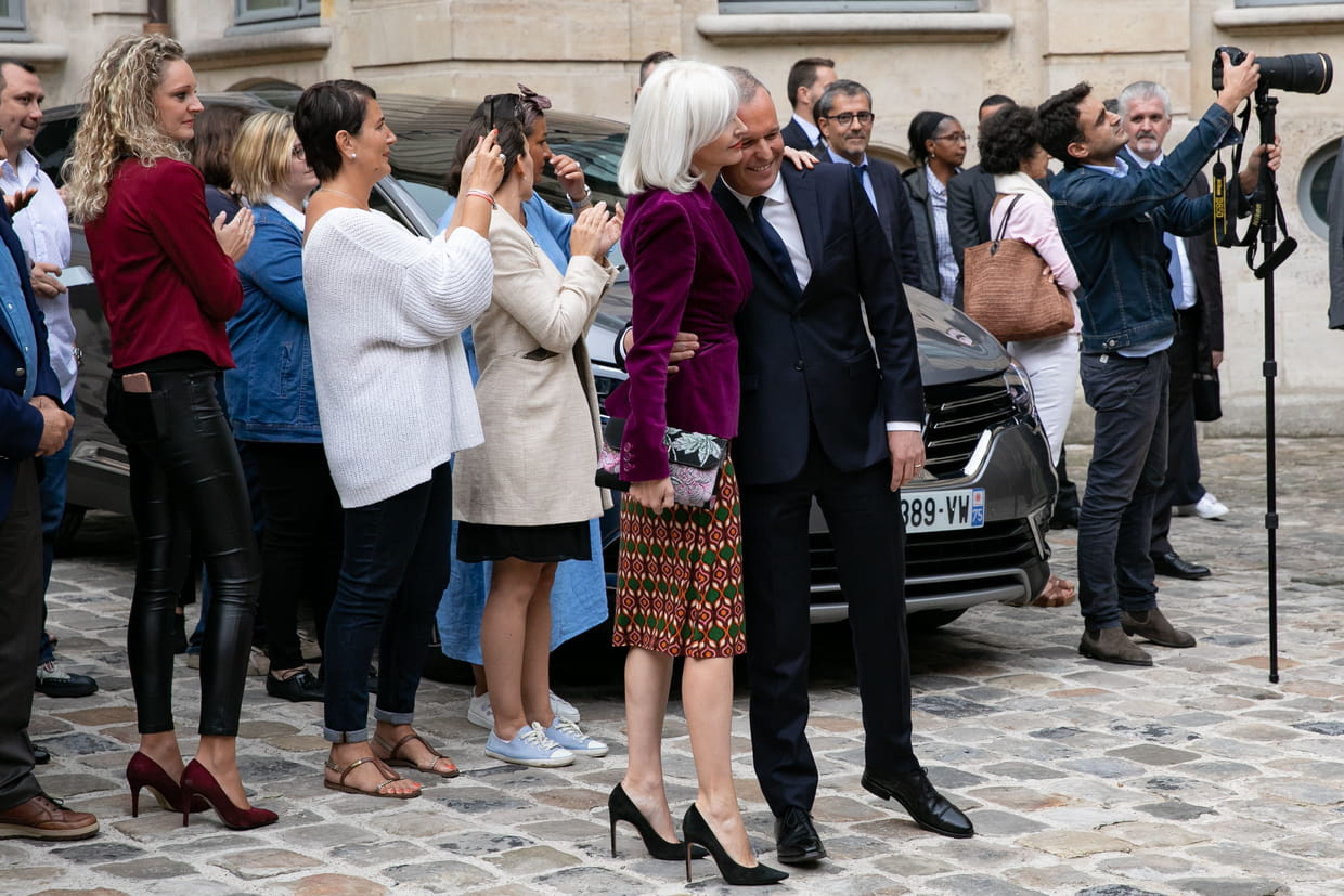 François de Rugy et sa femme Séverine Servat avant la passation de pouvoir