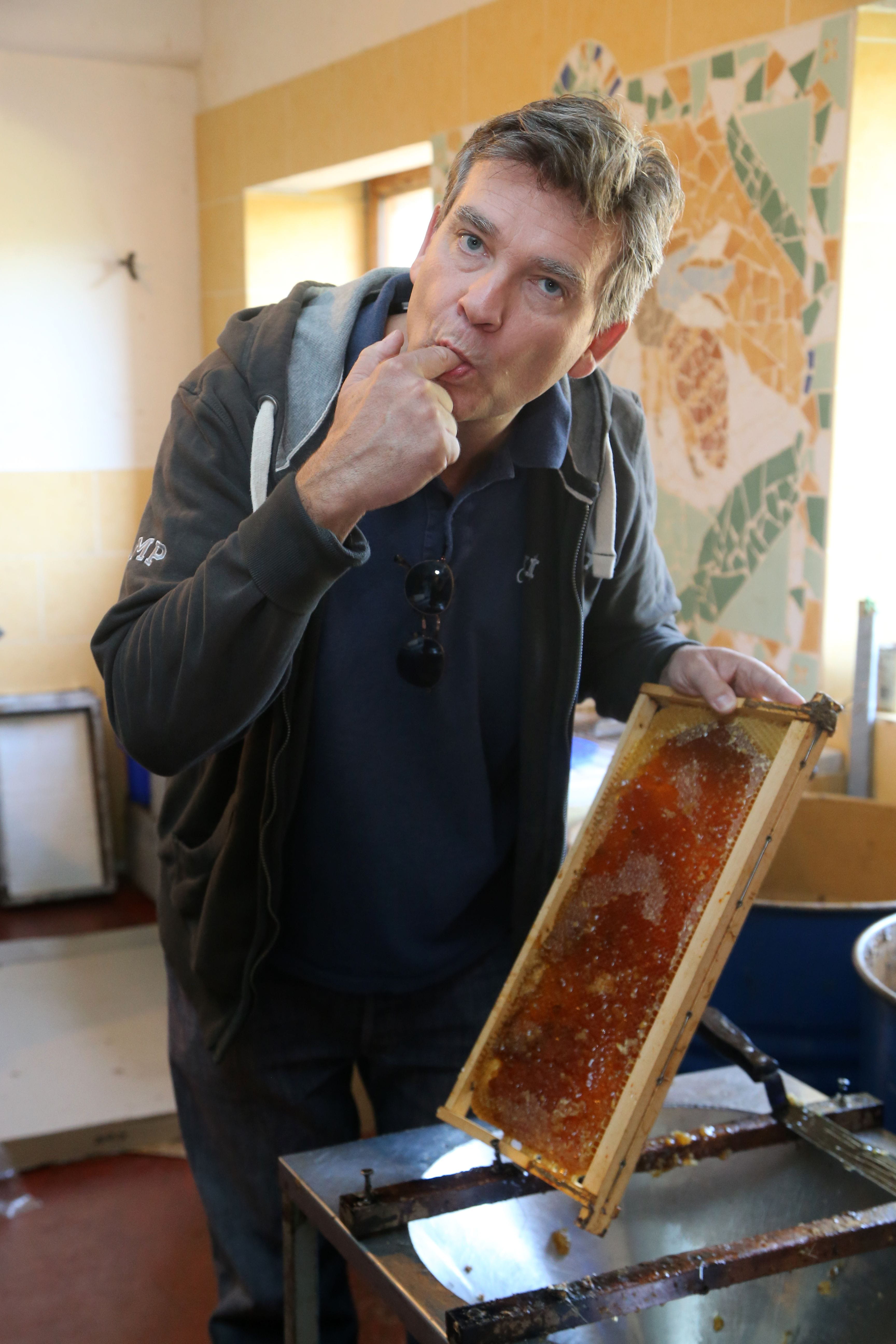 L'abeille blague. Arnaud Montebourg, qui lance sa propre marque de miel, s'est rendu dans une miellerie pour récolter la précieuse substance avec un apiculteur. Conquis, l'ancien ministre du Redressement productif a même sucé son index. Qui manie le miel… s'en lèche les doigts.