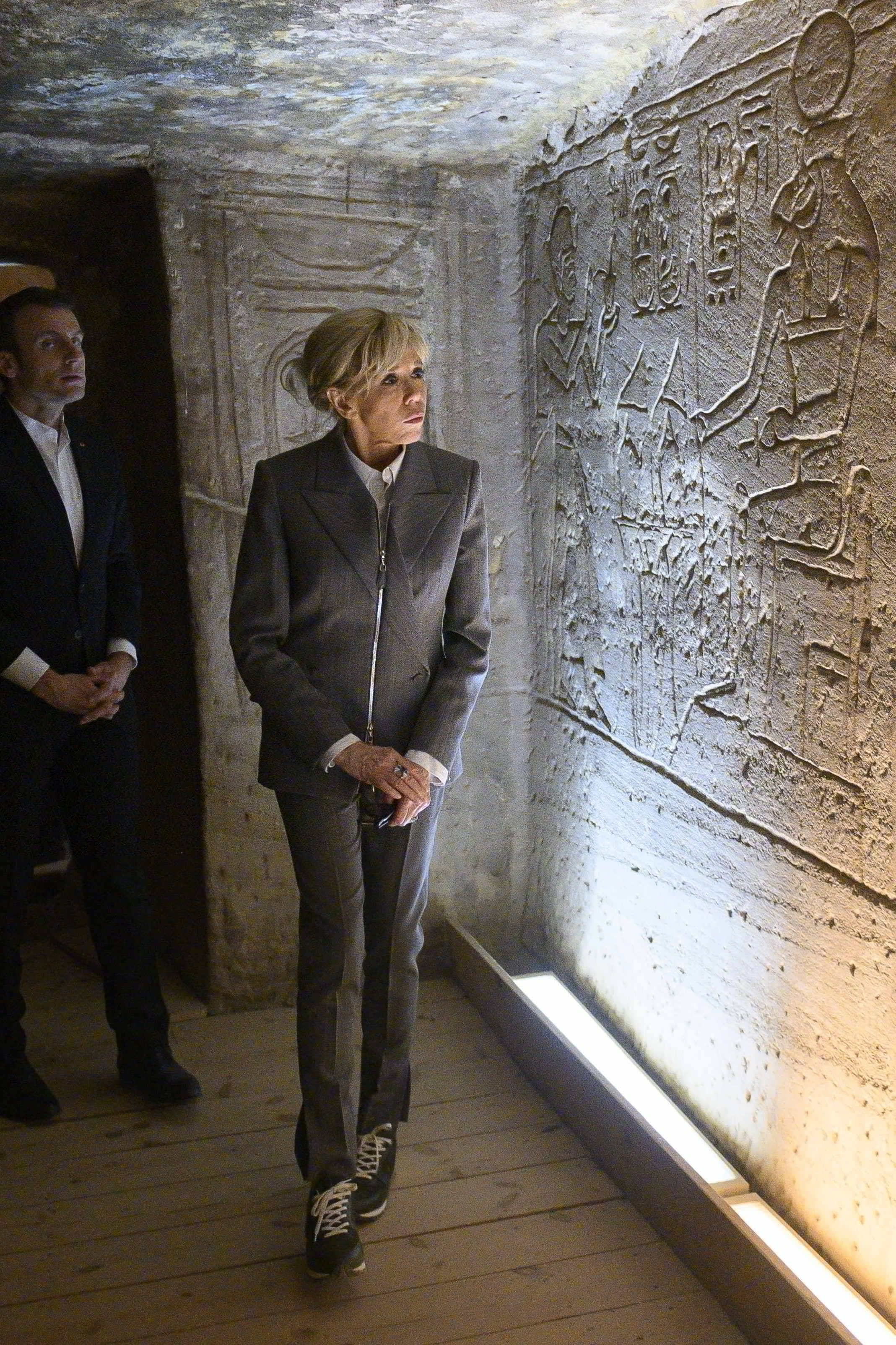 Tennis de luxe. Tollé sur la Toile lorsque Brigitte Macron a paradé en Egypte, chaussée de sneakers Louis Vuitton… à 620 euros. Un manque de considération pour les Français qui peinent à boucler leurs fins de mois ? Face à la polémique, l'entourage de la première dame a réagi, auprès de France Info : "Ce sont des chaussures prêtées. Cela ne coûte rien à l'Etat et cela met en valeur les créateurs français".
