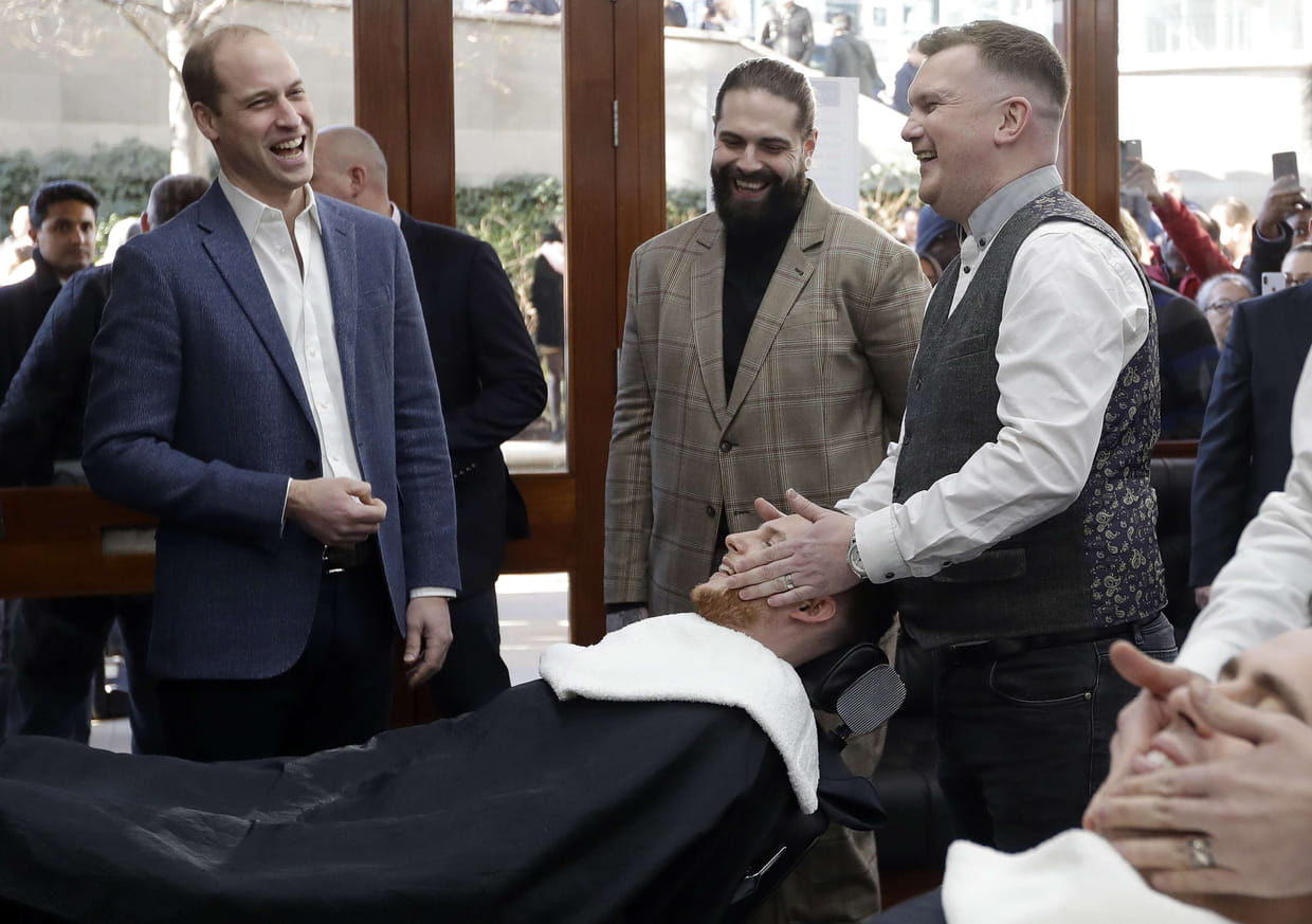 Le Prince William en visite chez le barbier