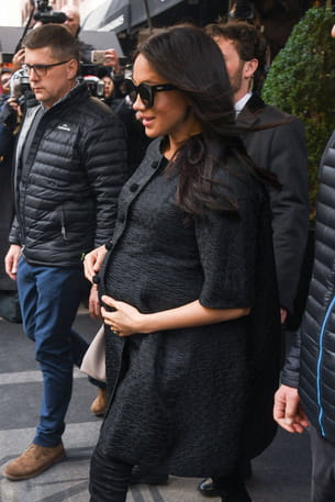 English(wo)man in New York. Meghan Markle, qui s'est envolée à New York pour célébrer sa baby shower, est apparue élégante dans les artères de la Grosse Pomme. La duchesse de Sussex (qui doit accoucher au printemps) est sortie de l'hôtel The Mark, vêtue d'un manteau noir William Wintage, chaussée de stilettos beige et parée de lunettes de soleil oversize. La classe à l'amér...anglaise.