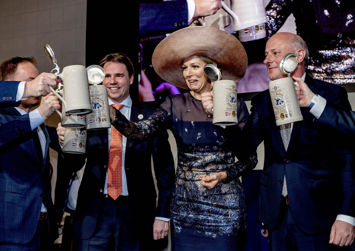 La Reine Maxima a fêté les 300 ans de la maison Bavaria, qui porte désormais le nom de cette famille de brasseurs : Swinkles. Le 28 mars 2019 à Lieshout (Pays-Bas).
