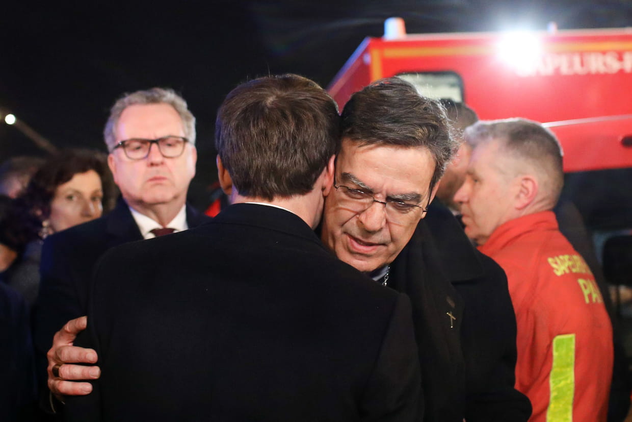 Emmanuel Macron prend dans ses bras l'archevêque de Paris