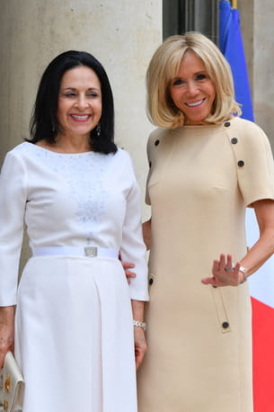 Rocio Gonzalez de Monero, première dame d'Équateur, fait amie-amie avec Brigitte Macron © Christian Liewig/ABACAPRESS.COM