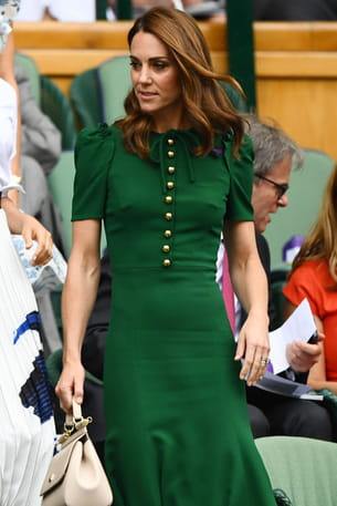 Belle de match. Kate Middleton a fait sensation à Wimbledon, vêtue d'une robe verte Dolce & Gabbana qu'elle avait déjà portée en visite officielle au Canada, en 2016. Pour recopier le look de la duchesse de Cambridge, il faudra déboursser 2150 livres sterling (soit 2400 euros). Rien que ça...