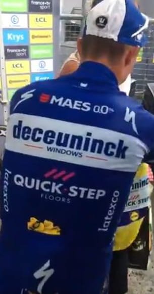 En roue libre. Julian Alaphilippe, Maillot Jaune du Tour de France 2019, a reçu la visite d'un petit garçon à Valloire, en Savoie, lorsque l'orage a commencé à gronder. Généreux, le cycliste français de 27 ans a alors donné sa veste à l'enfant pour que celui-ci n'attrape pas froid. Mignon !