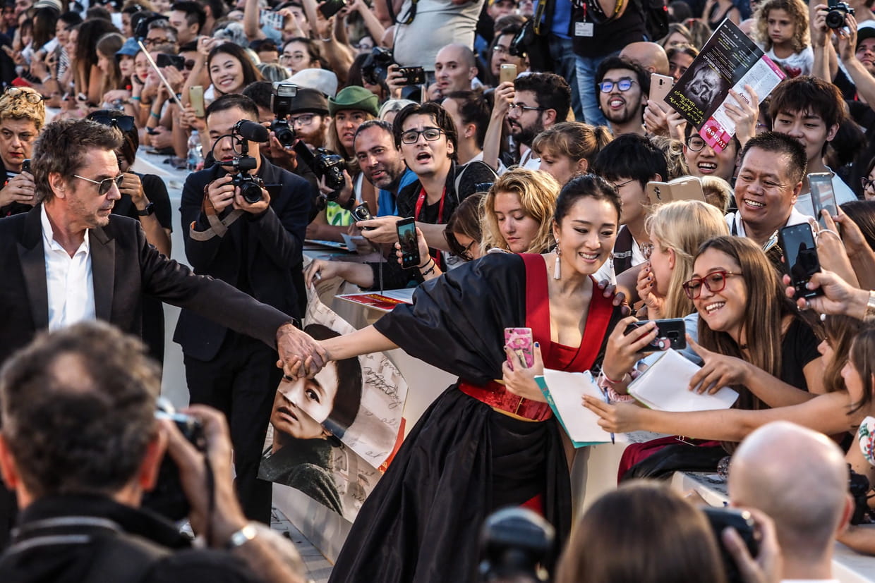 Jean-Michel Jarre et Gong Li sur le tapis rouge lors de l'avant-première du film Lan Xin Da Ju Yuan (Saturday Fiction), le 4 septembre.