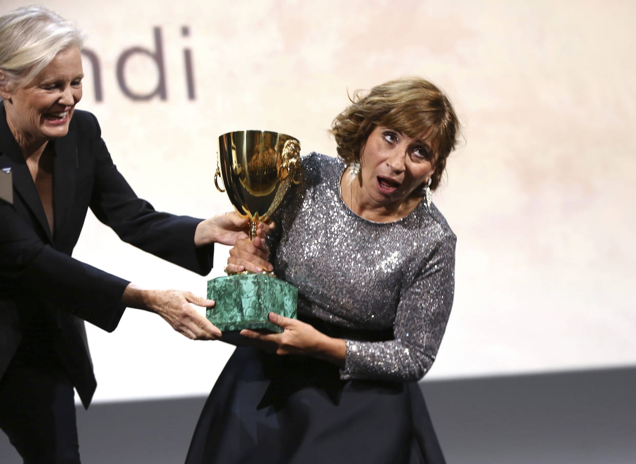 Ariane Ascaride reçoit le prix Coppa Volpi à Venise le 8 septembre pour sa performance d'actrice dans le film Gloria Mundi.