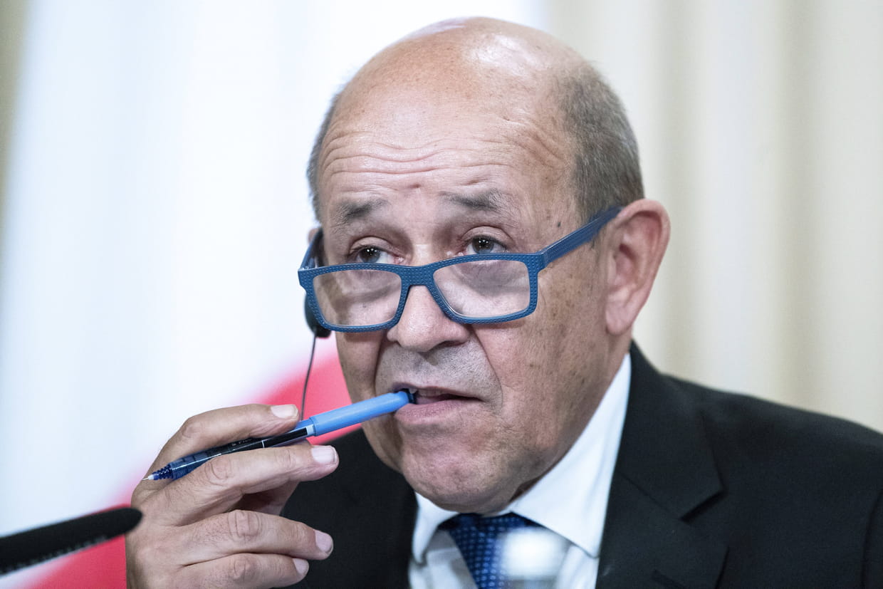 Jean-Yves Le Drian durant une conférence entre les ministères des affaires étrangères français et russe à Moscou le 9 septembre.